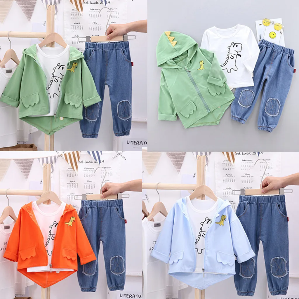 Buy CHAMSGEN Set Infant Toddler Kid Baby Boys Hooded Cartoon Dinosaur Coat+T-shirt+Jeans Pants Outfits Right Here and Right Now Just for USD US $12.93, Price will be rise up at any time without notification and I cant guaranted that the stock is still available tommorow or next hour. So Please Save It Now!