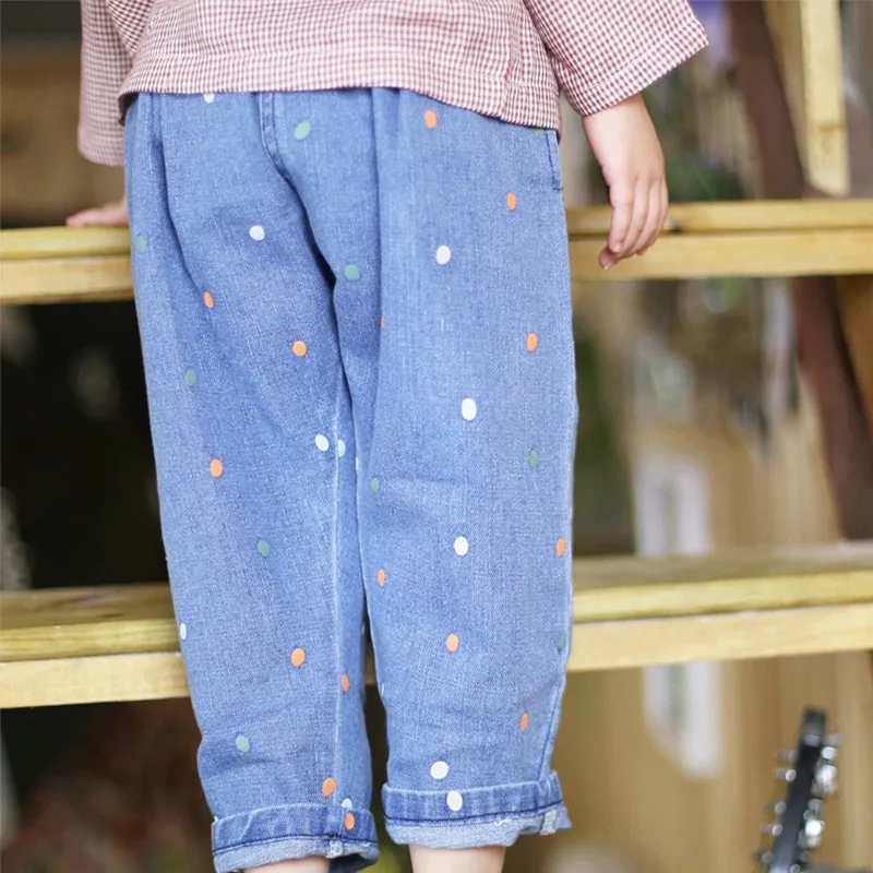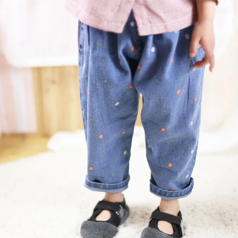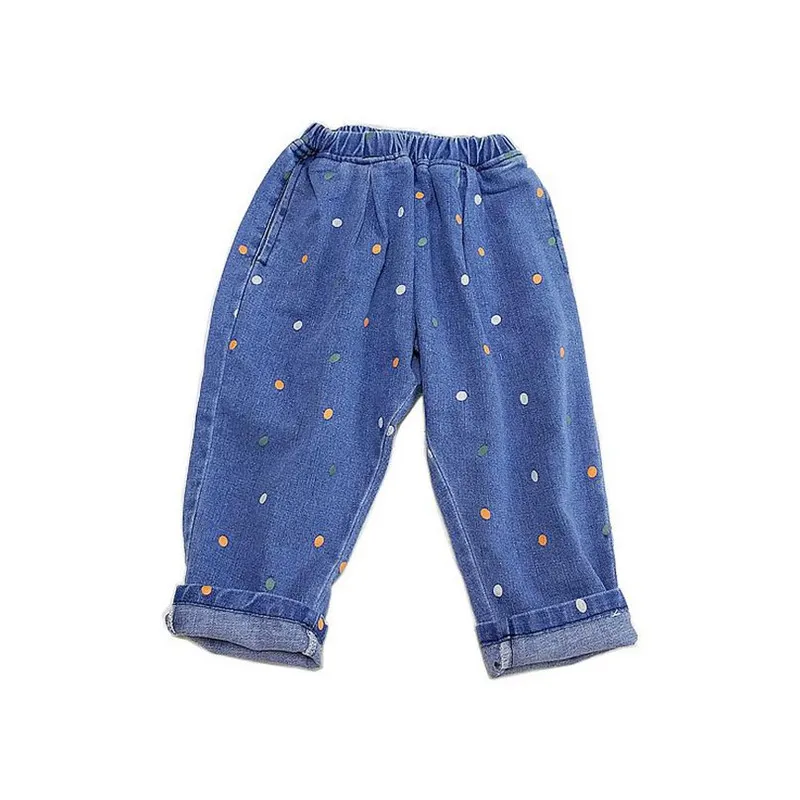 Good Chance for DFXD Kids Long Jeans Pants 2018 Spring New Fashion Baby Boys Girls Colorful Dot Print Loose Denim B